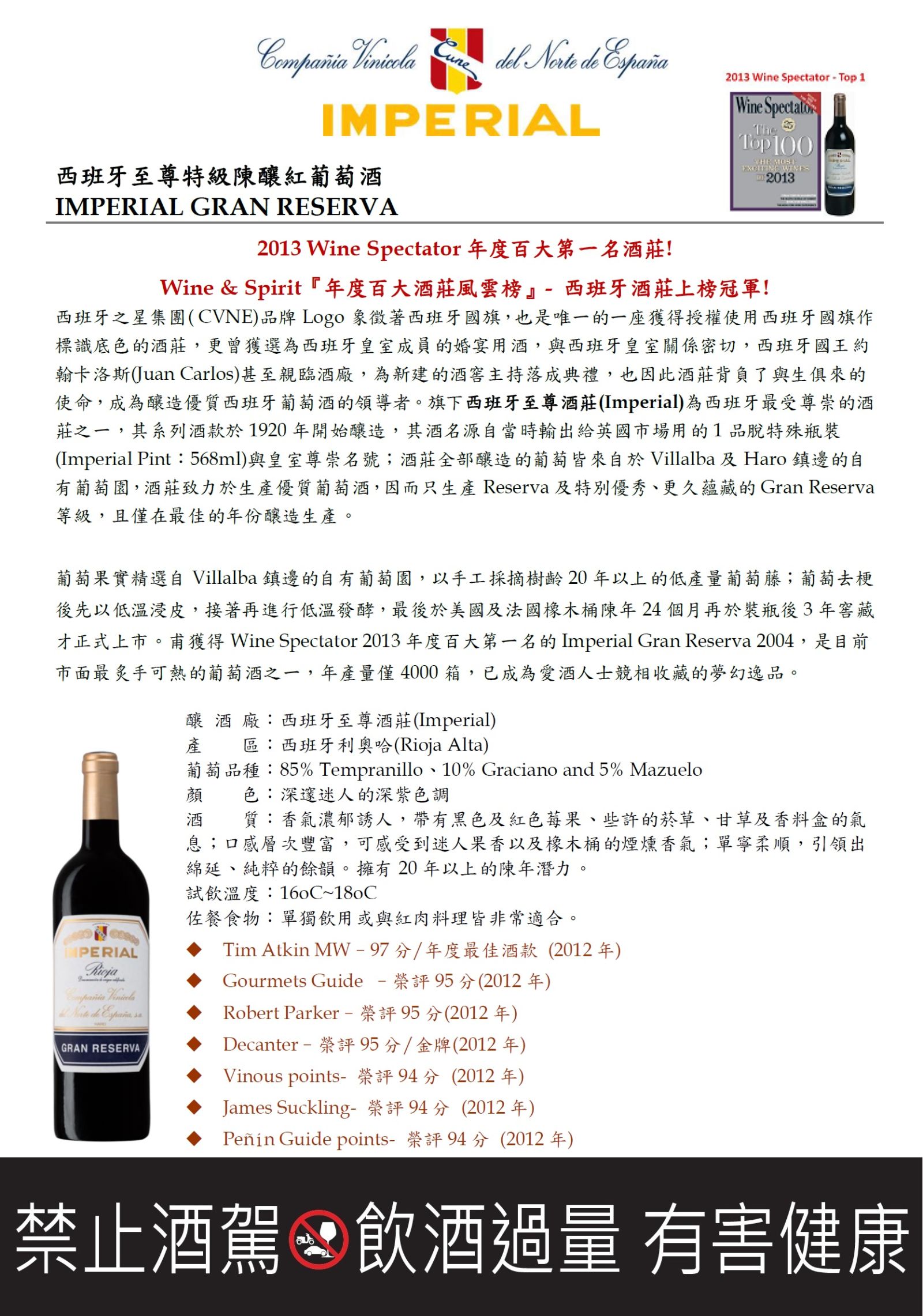 CVNE IMPERIAL GRAN RESERVA 西班牙之星 至尊特級陳釀 紅酒