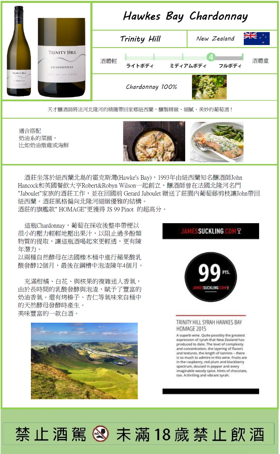 Trinity Hill Hawkes Bay Chardonnay 三聖丘酒莊 霍克灣 夏多內白酒