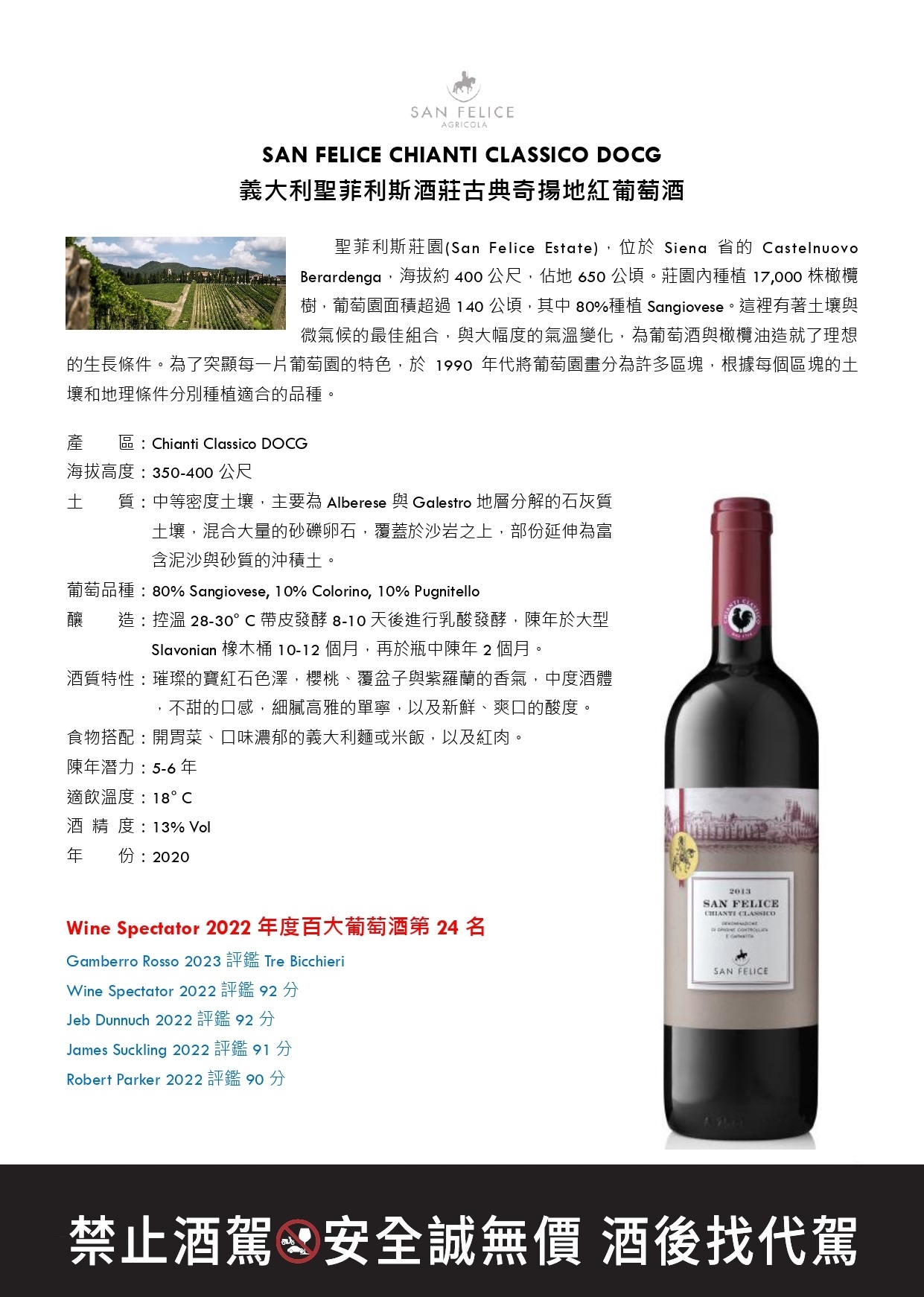 聖菲利斯莊園(San Felice Estate),位於Siena省的Castelnuovo Berardenga,海拔約400公尺,佔地650公頃。莊園內種植17,000株橄欖樹,葡萄園面積超過140公頃,其中80%種植Sangiovese。這裡有著土壤與微氣候的最佳組合,與大幅度的氣溫變化,為葡萄酒與橄欖油造就了理想的生長條件。為了突顯每一片葡萄園的特色,於1990年代將葡萄園畫分為許多區塊,根據每個區塊的土壤和地理條件分別種植適合的品種。