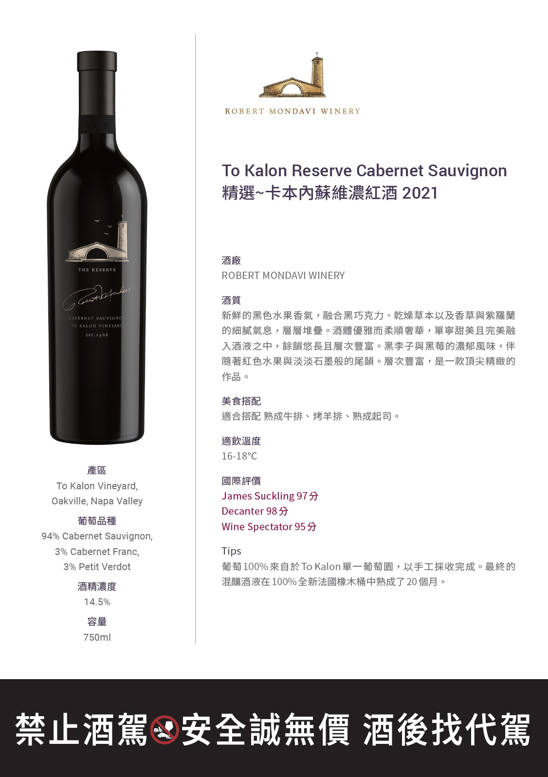 Robert Mondavi To Kalon Reserve Cabernet Sauvignon 2021